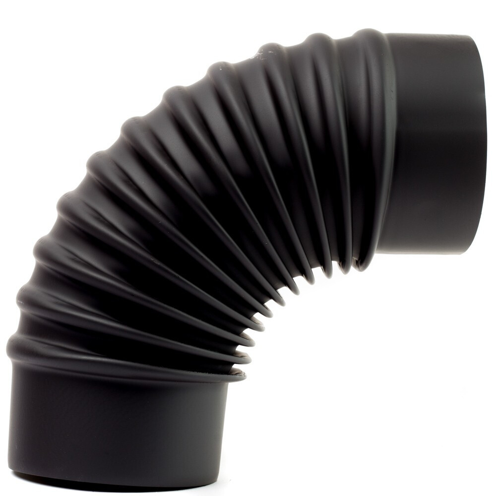 Így is ismerheti: 120-as kályhacső könyök, fekete füstelvezető könyök 120mm, 90 fokos füstcső könyök, kandalló könyök