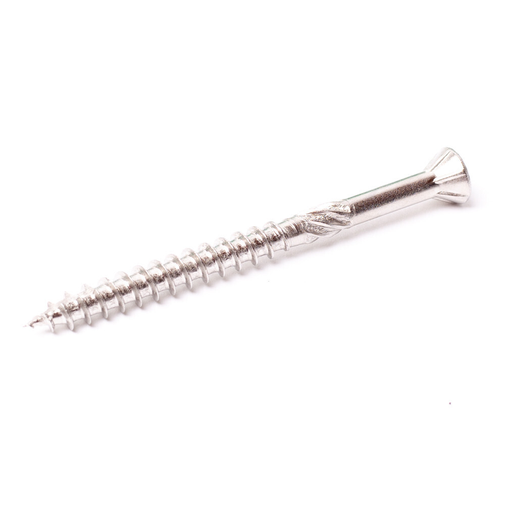 - Tökéletesen síkba simuló felület – a süllyesztett csavarfej alsó részén elhelyezett marózsebek vágják a fát a behajtás utolsó szakaszában, így a fej teljesen a járófelület síkjába süllyed, megelőzve a botlásveszélyt és a szálkásodást.