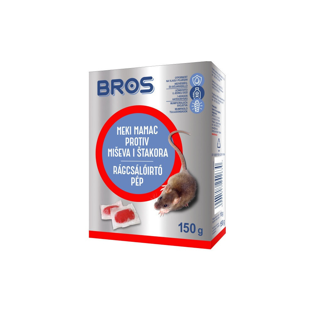 Így is ismerheti: Bros patkányméreg, Bros egérméreg pép, rágcsálóirtó gél 150g, Bros rágcsálóirtó csalétek, bromadiolon pép