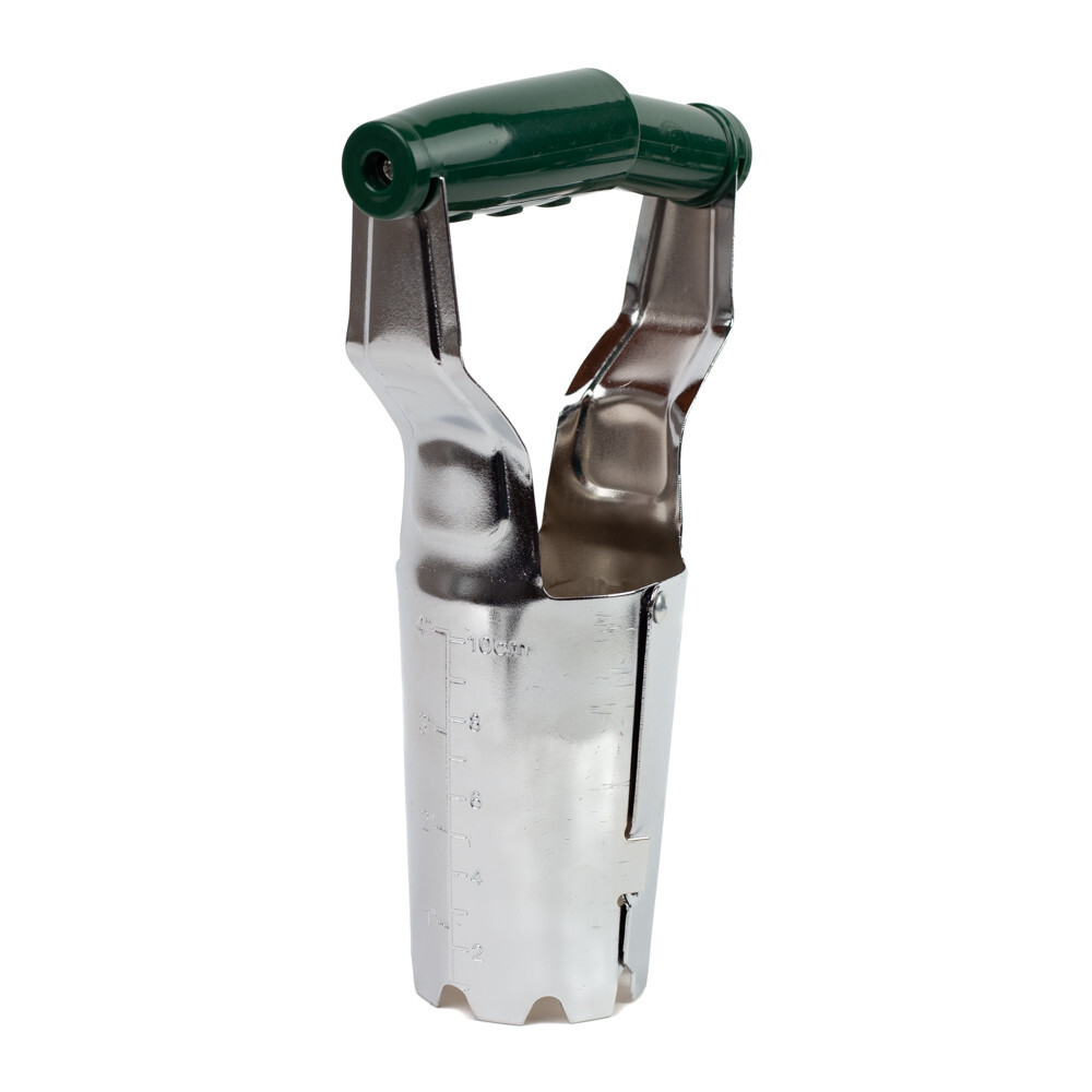 A szerszám legnagyobb előnye az elmés kialakításában rejlik. Csak nyomja a földbe az eszközt, emelje ki vele a földdugót, helyezze a lyukba a hagymát vagy a palántát, majd a rugós fogantyú összenyomásával egyszerűen engedje vissza a kiemelt földet a növényre. A szerszám oldalán található gravírozott mélységmérő skála (cm-ben és colban) segítségével mindig pontosan a tasakon vagy a kertészeti útmutatóban előírt mélységbe ültethet, így elkerülheti, hogy a hagymák túl mélyre kerüljenek, vagy épp túl közel a felszínhez. A masszív, krómozott acél test ellenáll a rozsdának és könnyen tisztítható, így hosszú éveken át hű társa lesz a kertészkedésben.